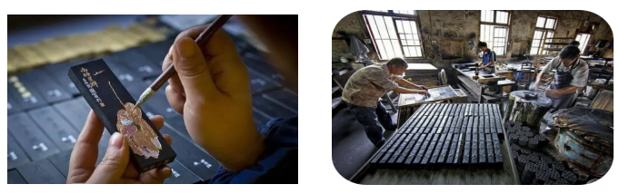 參觀胡開文墨廠,了解徽墨歷史與文化傳承淵源,參與徽墨描金工序,體驗(yàn)制墨古老工藝,學(xué)習(xí)了解徽墨歙硯的工藝流程與文化價(jià)值,思考非遺工藝的傳承。