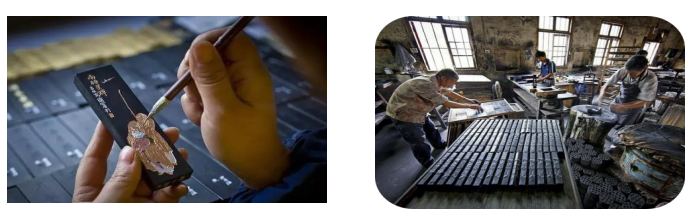 歙縣歙硯廠,兩廠一址,徽墨和歙硯的制作工藝同屬國家級非遺。參觀工藝流程,了解產(chǎn)品品類特點。 活動體驗:徽墨描金,訪談徽墨非遺傳人 |