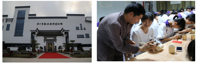 徽派雕刻博物館由國家級非物質文化遺產徽派竹雕傳承人洪建華于2013年籌建,博物館展示了洪建華收藏及創(chuàng)作的各類徽州傳統(tǒng)雕刻精品一千余件。走進徽州雕刻博物館精美的雕刻藝術品映入眼簾,竹雕、木雕、石雕、磚雕等多種多樣的雕刻作品展現在同學們眼前,每一個作品的背后都蘊藏著匠人的熱愛與付出的汗水。