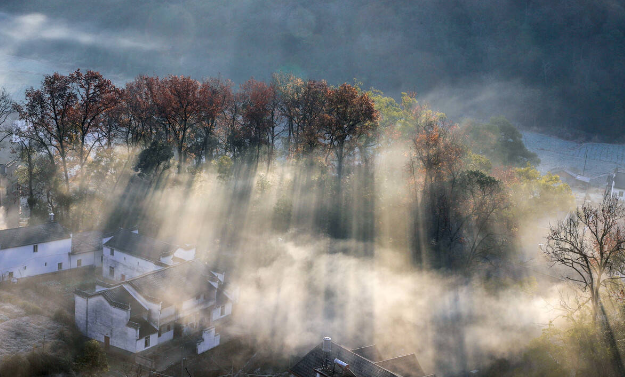 【對沖】婺源小石城,村里百余棵紅楓高聳林立,與白墻黛瓦的徽派院落交相輝映,深秋時節(jié)最是一年好景致。