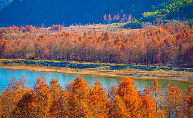 金黃色的落羽杉如同燃燒的火焰,轟轟烈烈妖妖嬈嬈。