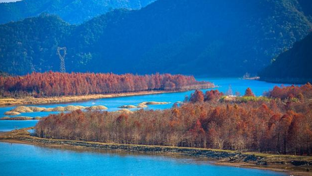 自備車前往宣城落羽杉濕地公園,位于安徽省寧國市方塘鄉(xiāng)青龍灣水庫腹地,被稱為“安徽'川藏線'最美寧國段”。此時來到公園,絲毫感覺不到冬天寂靜的氣息。11月的風(fēng)吹過,成片落羽杉被染成黃色,金色、紅色,五彩斑斕,色調(diào)反而更加飽滿豐富。